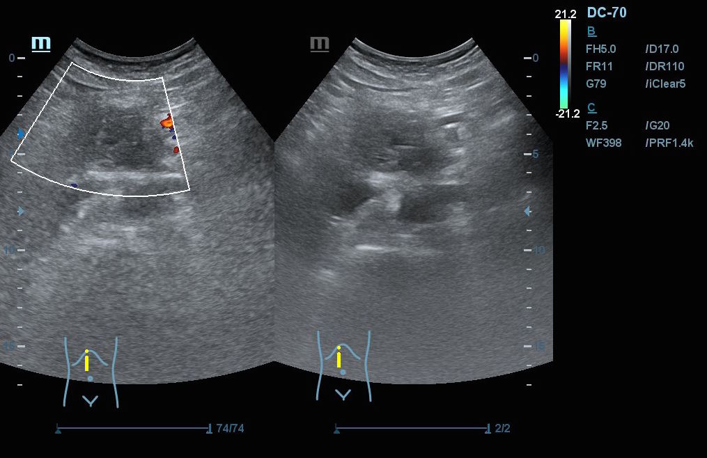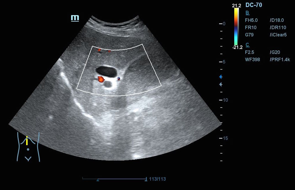 Hombre de 62 años con antecedente de viaje a México hace un mes, durante el cual ha presentado diarrea intermitente, acompañada de una pérdida de peso de alrededor de 10 kg. A la exploración física, como único hallazgo relevante, se observa un tinte subictérico, por lo que se decide realizar una ecografía clínica.