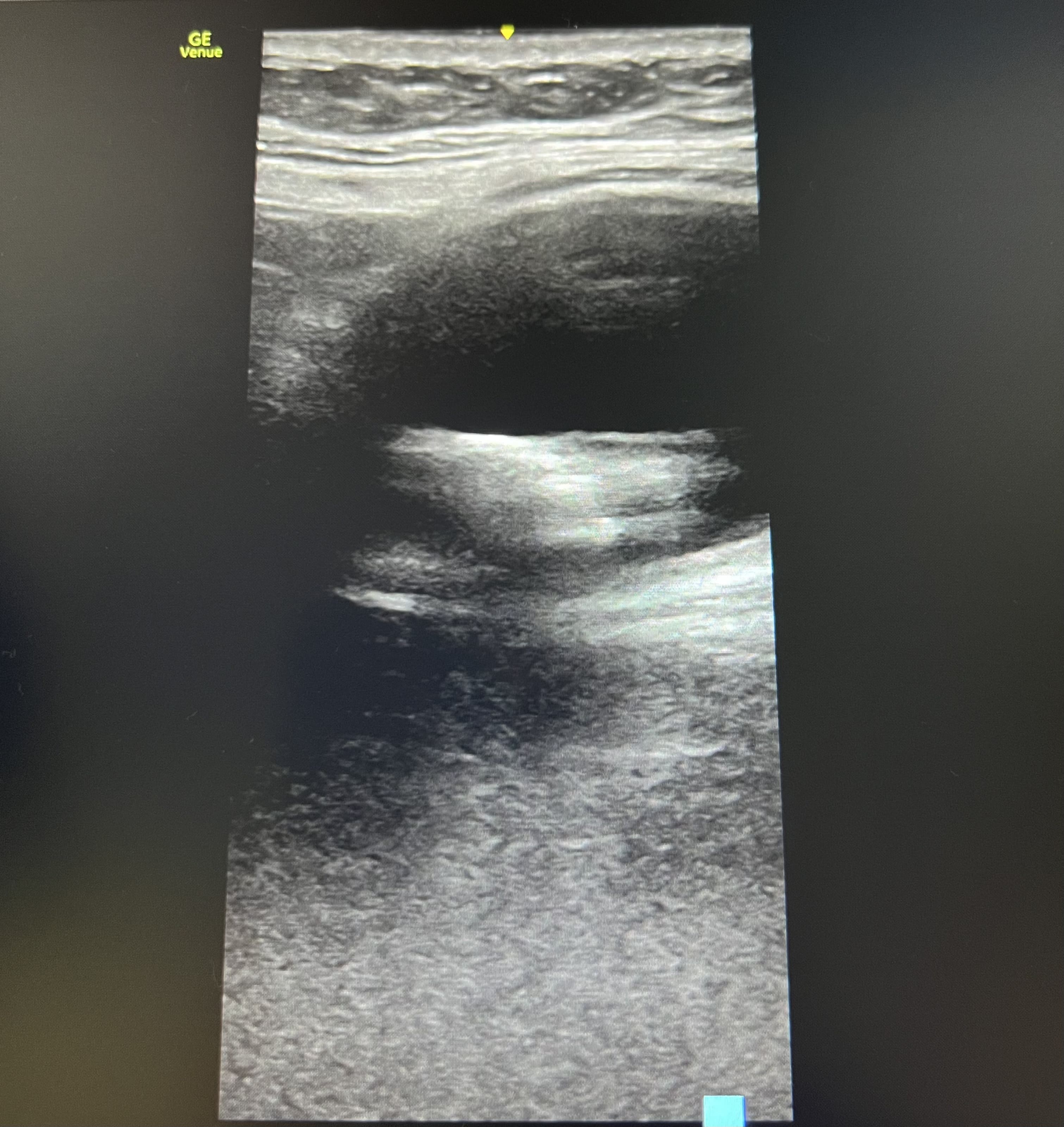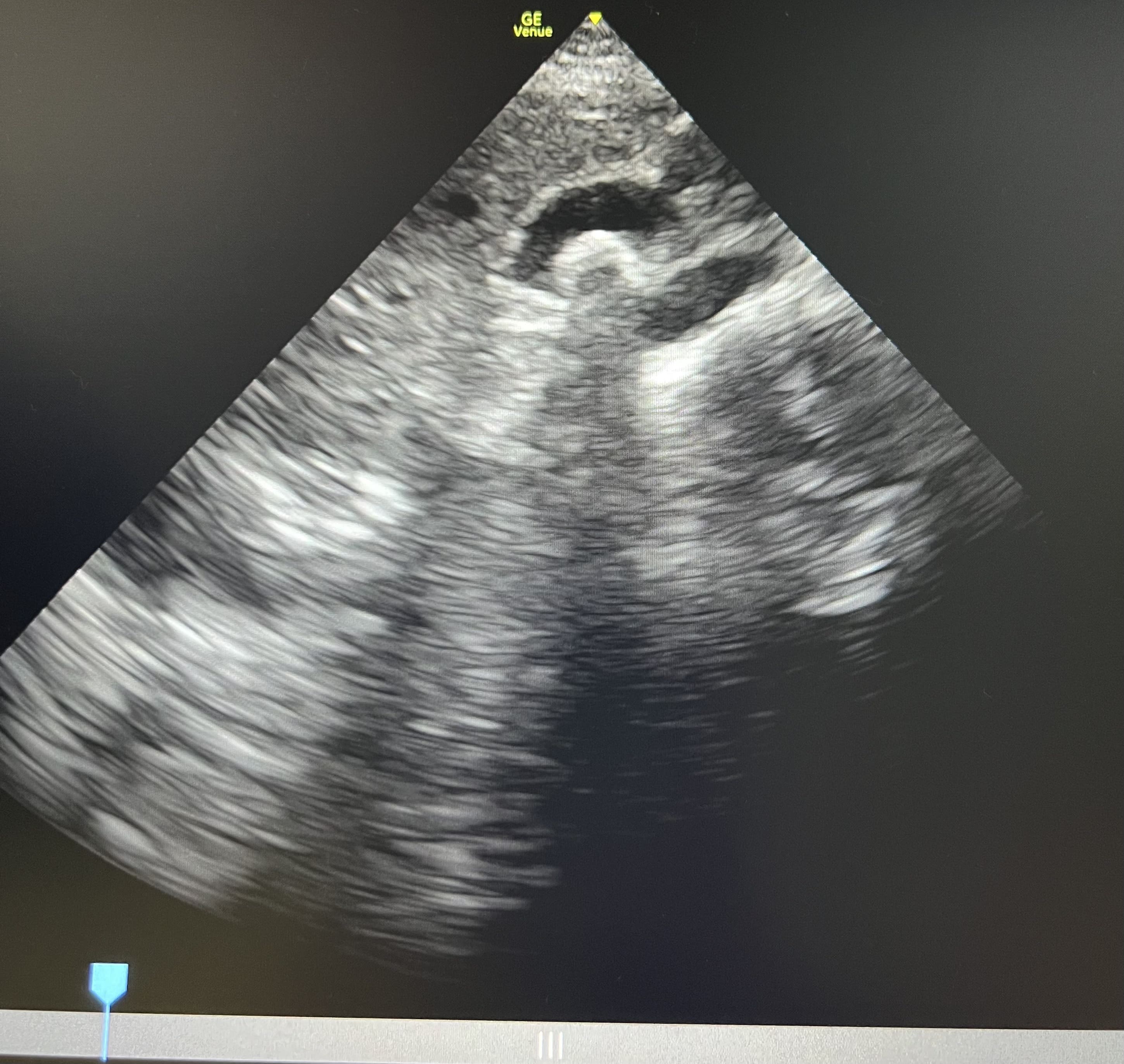 Pruebas complementarias: Ecografía abdominal con sonda convexa: vesícula biliar distendida con litiasis de 4 centímetros en su interior y sombra acústica posterior. Ecografía con sonda lineal en flanco derecho: lesión anecoica ovalada con imagen hiperecoica en su interior, que no captan Doppler, y movilizan con la respiración, en tejido subcutáneo.